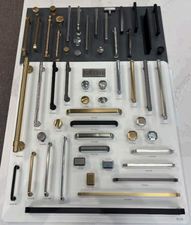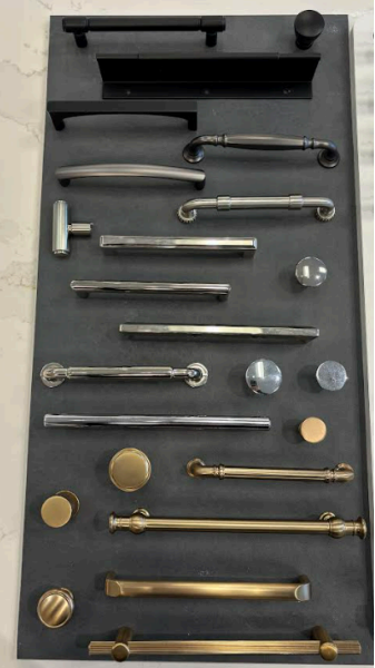 At our Blue Ribbon showroom, clients can see and feel a variety of Top Knobs cabinet hardware samples to find the perfect match for their home: